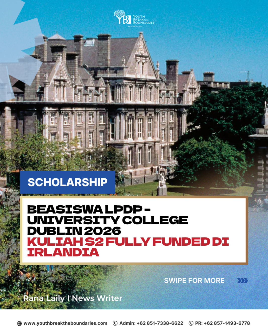 YBB – Program Beasiswa LPDP – University College Dublin (UCD) 2026 saat ini masih dibuka dan menjadi salah satu peluang terbaik bagi mahasiswa Indonesia yang ingin melanjutkan studi S2 di luar negeri dengan pendanaan penuh. Program ini merupakan bagian dari skema kemitraan LPDP dengan universitas global unggulan.
