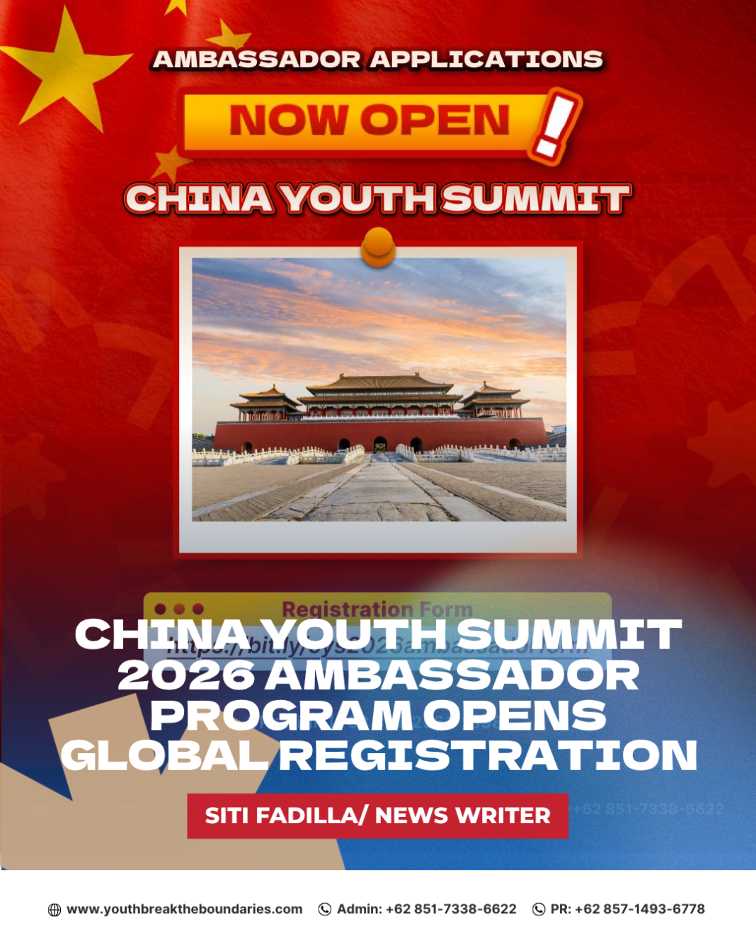 The opportunity to represent a global youth movement is finally here. The China Youth Summit 2026 Ambassador Program, initiated by Youth Break the Boundaries (YBB), has officially opened its registration for young people across the world.