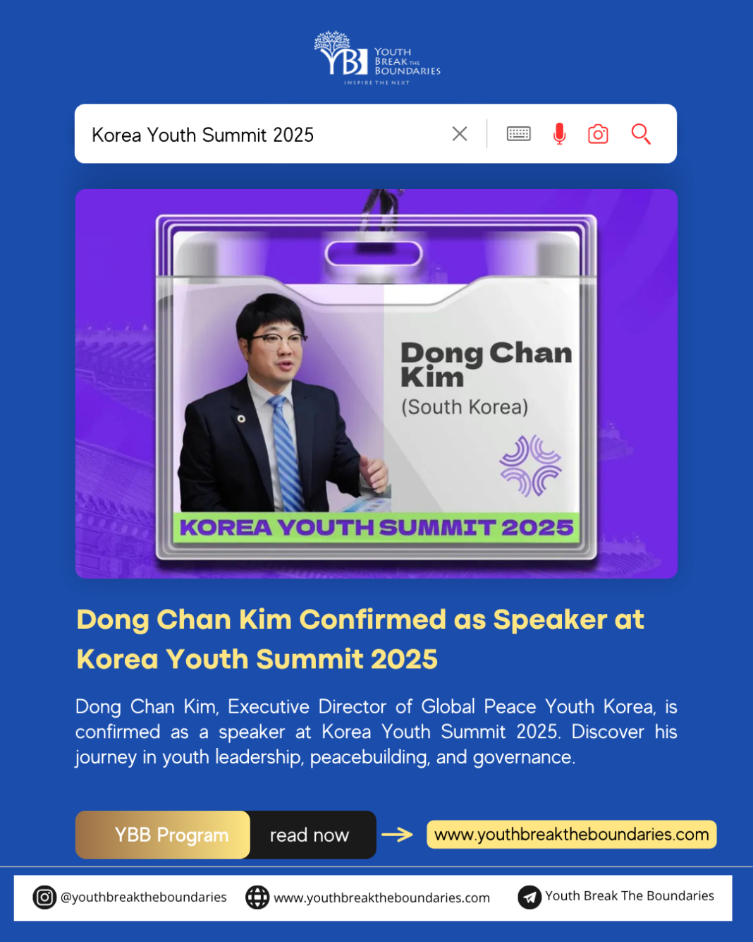 Dong Chan Kim has been confirmed as one of the official speakers for the upcoming Korea Youth Summit 2025. This global forum will bring together youth delegates from 15 countries to collaborate on solutions for a better future.