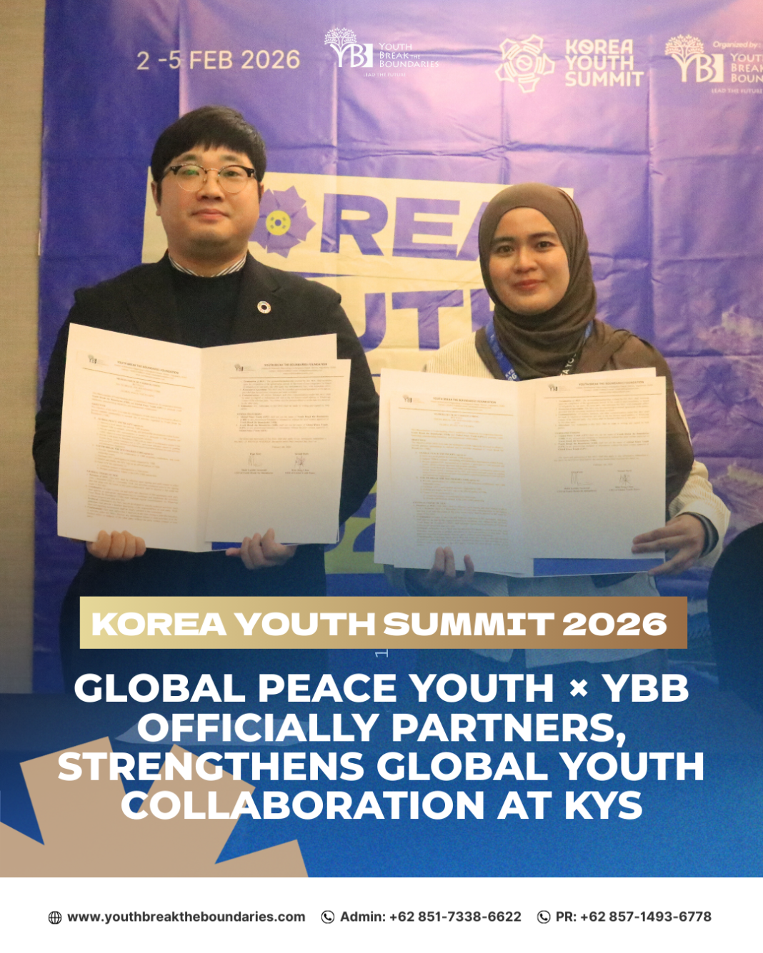The partnership between Youth Break the Boundaries and Global Peace Youth Korea at Korea Youth Summit 2026 marks an important step in advancing youth-led peace initiatives. By combining global perspectives with local action, this collaboration offers kamu a platform to learn, lead, and contribute meaningfully to peacebuilding efforts. Both organizations remain committed to shaping a future where youth play a central role in creating a more peaceful and inclusive world.