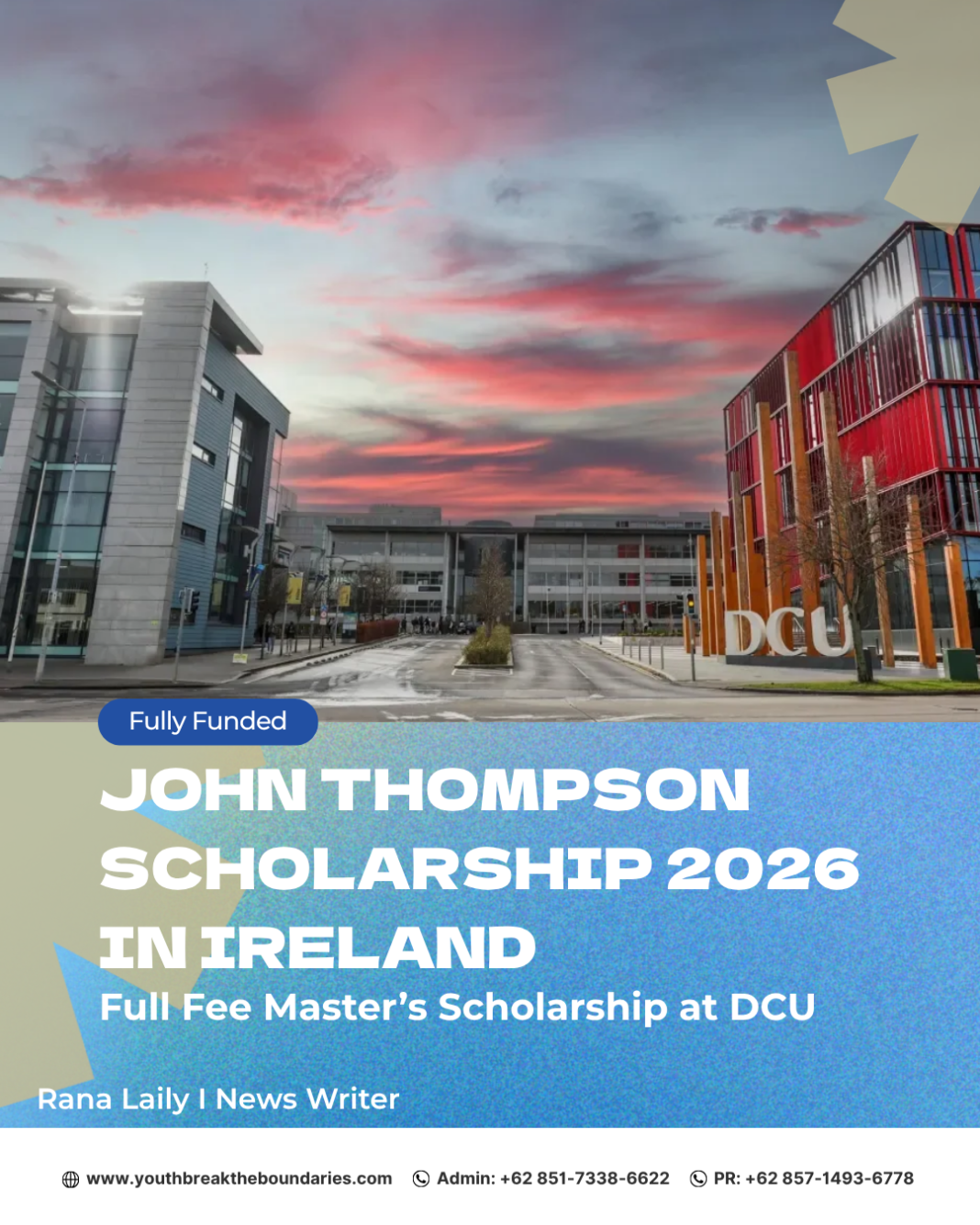 The John Thompson Scholarship 2026 in Ireland is an outstanding opportunity for students who want to pursue advanced studies in digital marketing at Dublin City University. With full tuition coverage, industry networking, and a globally relevant academic program, this scholarship helps scholars prepare for successful careers in marketing and media. Students with strong academic records and a passion for digital innovation should strongly consider applying before the deadline.